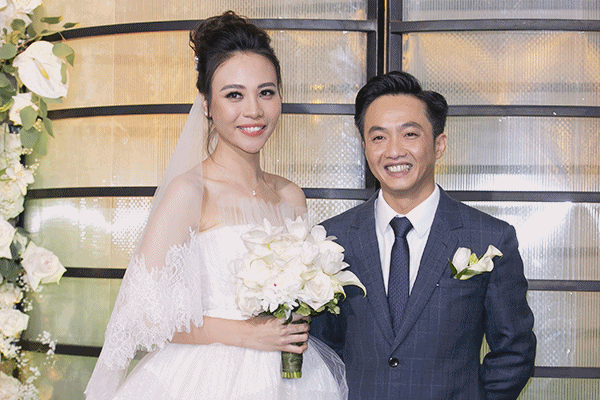 Vợ chồng Diệp Lâm Anh cùng nắm tay sánh đôi đến dự lễ cưới. Cô đùa vui rằng vì đang mang bầu nên đã bị cắt khỏi vai trò phù dâu.