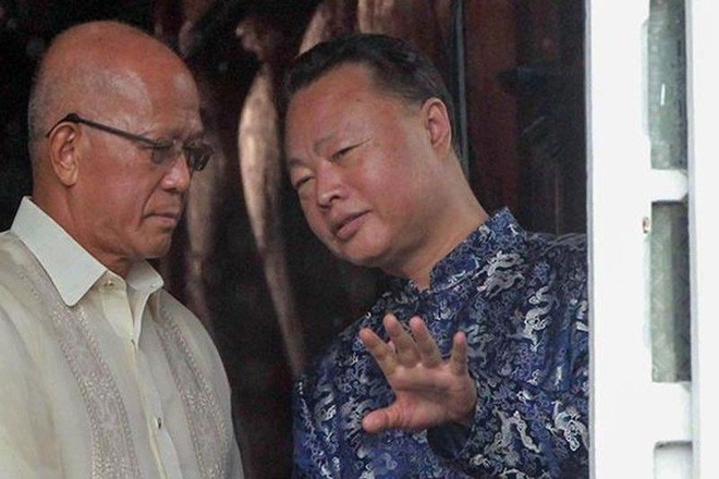 Đại sứ Trung Quốc Triệu Giám Hoa (phải) và Bộ trưởng quốc phòng Philippines Delfin Lorenzana (Ảnh: The STAR/KJ Rosales)