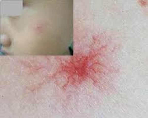 Hiện tượng này thường xuất hiện ở mặt, cổ và ngực trên và có màu đỏ. còn được biết tới với tên gọi là “sao mạch” hoặc “nốt ruồi mạng nhện”. Đây là hiện tượng u mạch nổi lên trên bề mặt da, từ nhánh mạch nhỏ lan tỏa ra xung quanh các đường vành (giống mạng nhện).