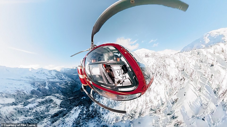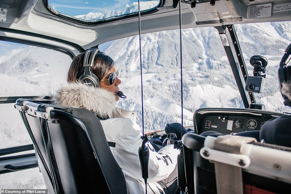 Những bức ảnh ghi lại khoảnh khắc Luana lái trực thăng qua những ngọn núi cao ngất, lướt qua những hồ băng rộng mênh mông hay bay lượn trên những khu rừng tuyết phủ trắng xóa.