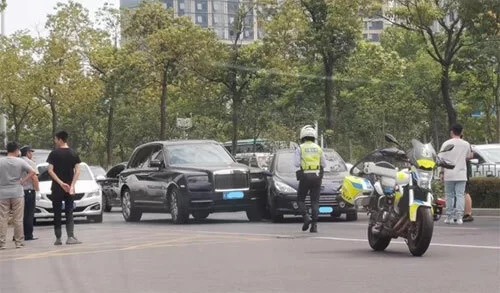 Nữ tài xế người Trung Quốc lái chiếc xe 1.500 USD đã tạt đầu chiếc xe siêu sang. Xe con Peugeot đời 2008 chuyển làn va vào Rolls-Royce Cullinan trên con phố ở tỉnh An Huy, Trung Quốc, gây xước và móp nhẹ.