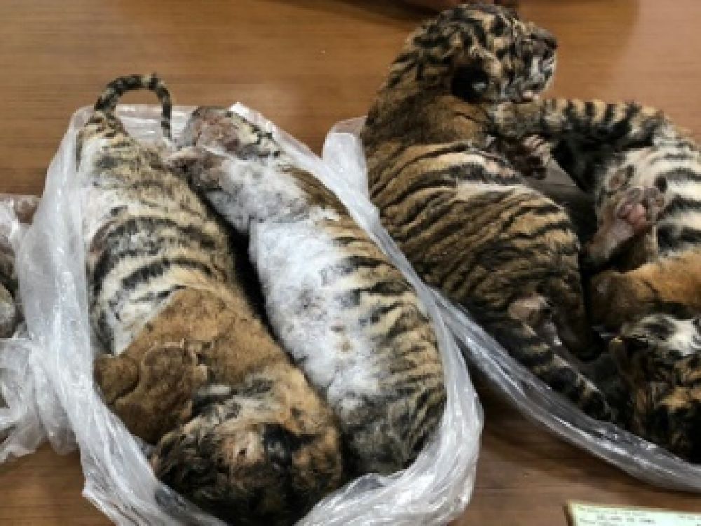 Xác của 7 con cọp non uớp lạnh bị cảnh sát bắt giữ tại Hà Nội, ngày 23 tháng 7 năm 2019.