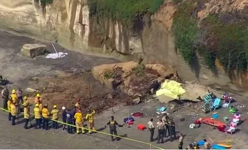Vách đá sập xuống bãi tắm ở Mỹ, ít nhất ba người chết