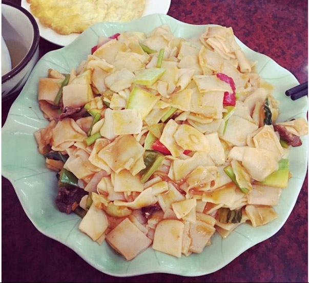 Món ăn dễ gây nghiện này đến từ phía tây bắc tỉnh Tân Cương, nơi có một cộng đồng Hồi giáo cư ngụ, v́ vậy bạn sẽ t́m thấy rất nhiều thịt cừu và th́ là trong món ăn này. Những “viên ḿ” được làm từ bột ḿ đă được cán phẳng, cắt thành h́nh vuông và bỏ vào nước sôi cho đến khi chín. Những viên ḿ này sau đó được vớt ra khỏi nước và cho vào chảo xào cùng ớt, cà chua, thịt cừu và hành lá tạo thành một đĩa ḿ ngon tuyệt.