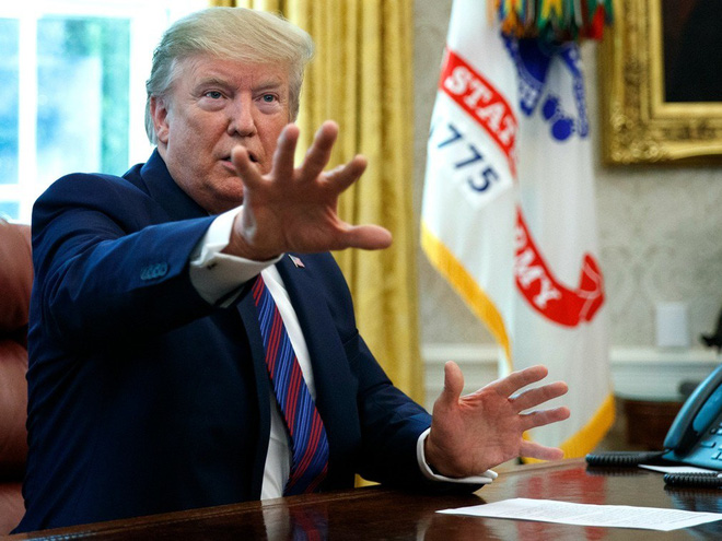 Tổng thống Trump vừa quyết định áp mức thuế mới với 300 tỷ USD hàng hóa nhập khẩu c̣n lại của Trung Quốc. Ảnh: AP