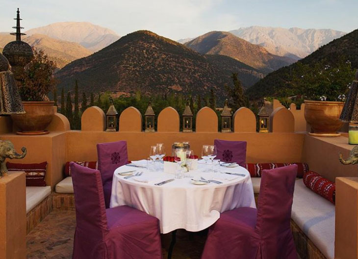 Một chuyến đi đến Ma-rốc sẽ không hoàn hảo nếu chưa nhìn thấy dãy núi Atlas. Nhà hàng Kanoun tại khu nghỉ mát Kasbah Tamadot sẽ mang lại cho thực khách những khung cảnh tuyệt vời cùng các món ăn ngon truyền thống của Ma –rốc và các loại rượu vang nổi tiếng.