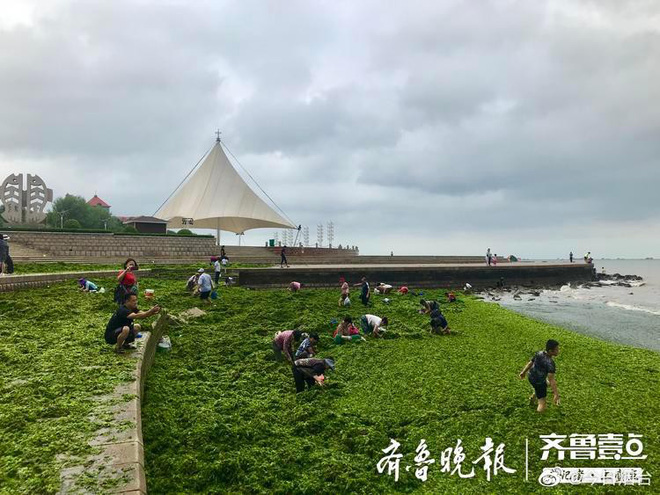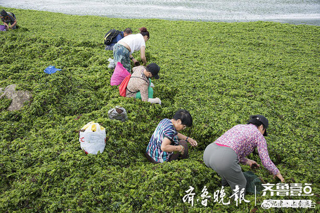 Theo đó, trên khắp một dải bờ biển tại đây, một lượng rong biển vô cùng lớn đã được bão cuốn theo vào bờ. Người dân địa phương sau khi biết có hiện tượng này đã bảo nhau ra đây nhặt về làm thực phẩm.