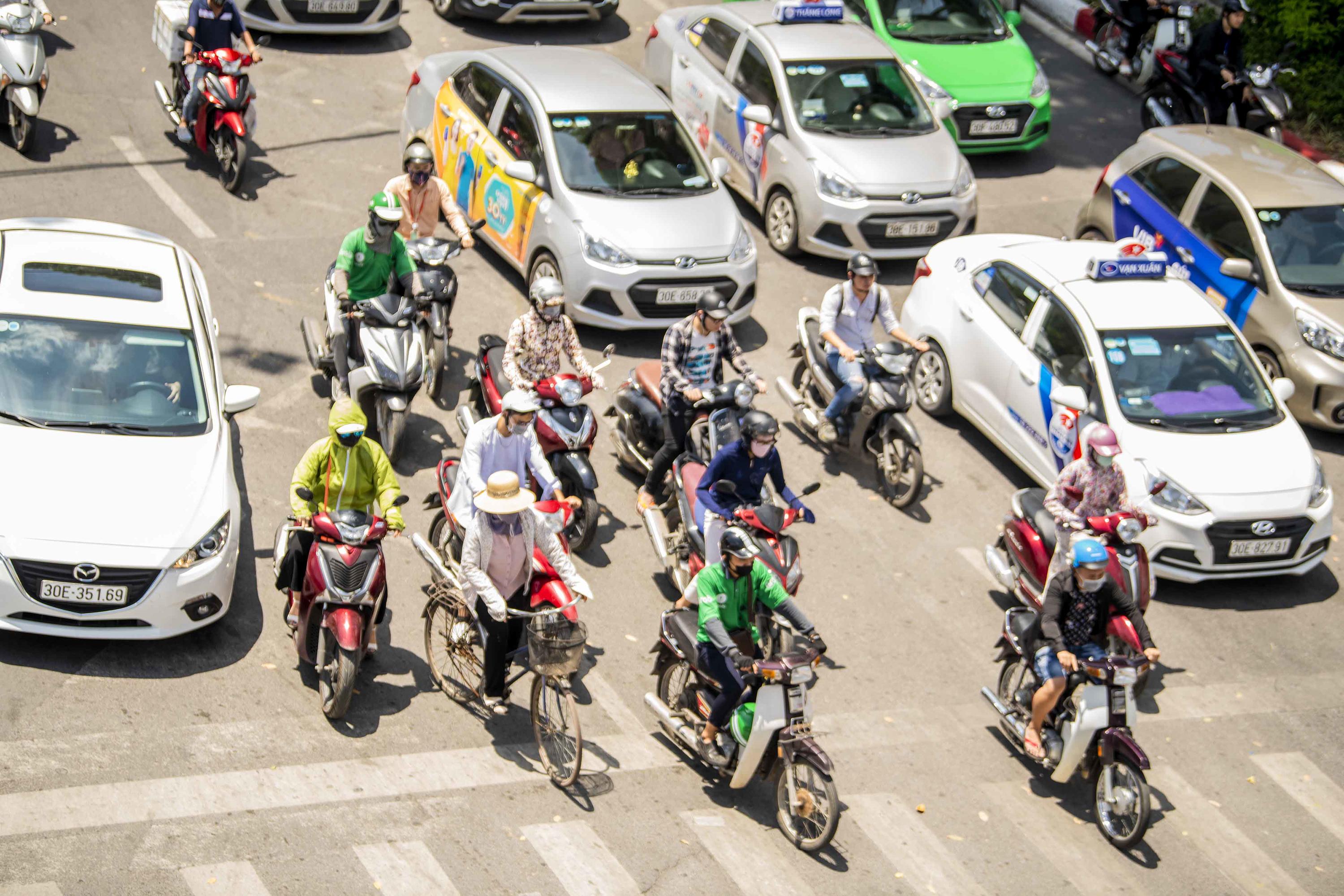 Tại Hà Nội trời nắng nóng với nhiệt độ cao nhất phổ biến 35-38 độ khiến người đi đường khá mệt mỏi.