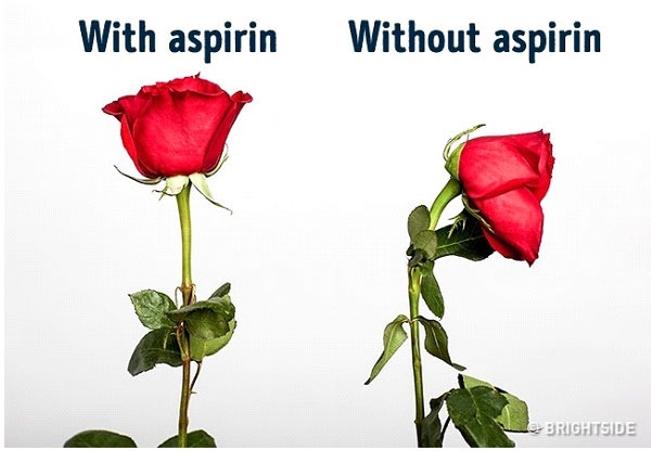 Hoa có thể tươi lâu hơn gấp hai lần khi cho thêm thuốc Aspirin. Loại thuốc này có tác dụng chống úa tàn và giúp giữ các loại hoa như hoa cúc, hoa cẩm chướng, hoa lay ơn và hoa hồng tươi lâu. Ngoài ra, dùng aspirin kèm một chút muối sẽ giúp hoa cẩm chướng lâu tàn.
