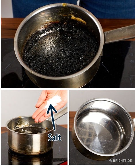 Những mẹo vặt ở dưới đây không hề thừa cho cuộc sống. Khi nấu nồi bị cháy như thế này, hãy thêm nước và một chút muối, đun sôi khoảng 15-20 phút, vết bẩn sẽ không bám lại nồi...