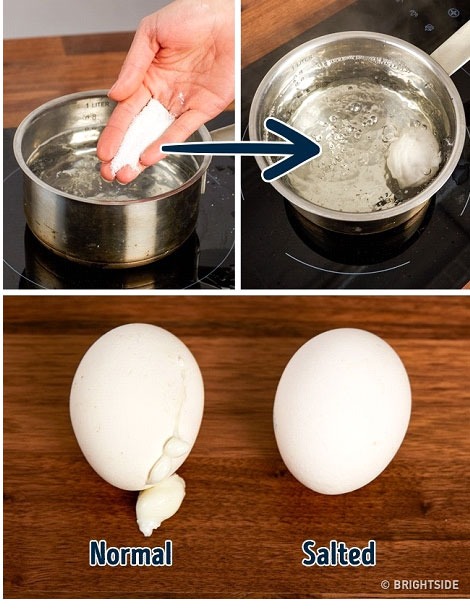 Để tránh việc vỏ trứng nứt và lòng trắng bị chảy ra khi luộc như thế này, khi đun nước hãy thêm vào một ít muối