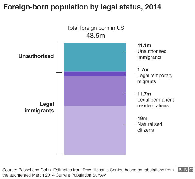 Số người nhập cư chưa hợp pháp và hợp pháp ở Mỹ tính đến 2014