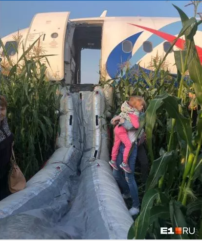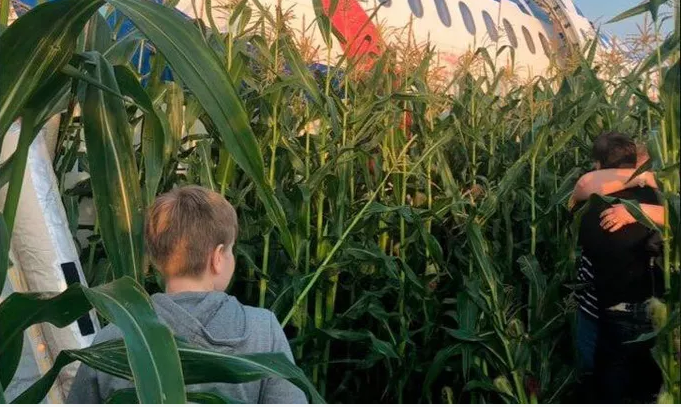 Trang tin Life.ru đăng tải cảnh quay mọi người đi qua cánh đồng, ra khỏi chiếc máy bay đang nằm giữa những cây bắp.
