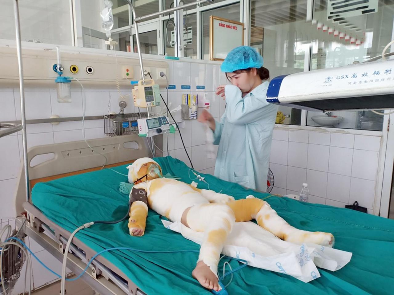 “Cả ba cháu bé đều bị phỏng rất nặng, diện tích lên tới 50-60%, các bé đều vào viện trong tình trạng sốc. Hiện các bệnh nhi đang phải truyền dịch, chống sốc, giảm đau an thần… tiên lượng vô cùng khó khăn, chưa nói trước được điều gì,” Bác Sĩ Thảo cho biết.