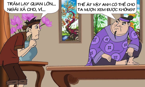 Quan gật đầu: – Ừ, được đấy! Nghe quan khen, anh ta vững bụng đọc tiếp: