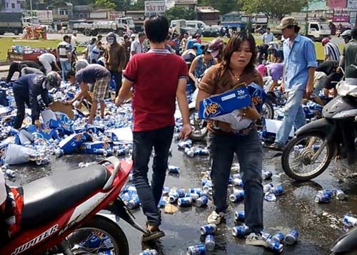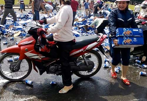 Xe chở vịt bị lật ra đường, người dân xúm nhau đến "hôi của" ... Thấy xe chở vịt bị lật, nhiều người cảm thông với mất mát của nhà xe đã đến hiện trường chung tay tìm bắt số vịt còn sống, gom lại giúp người gặp nạn, nhưng có nhiều người lợi dụng việc này đến "hôi của" rất đáng buồn....