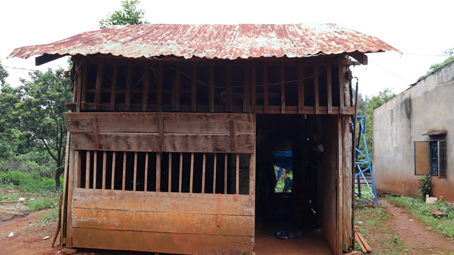 Căn nhà gỗ đã cũ của vợ chồng sản phụ Vy Thị Yến ở xã Thống Nhất