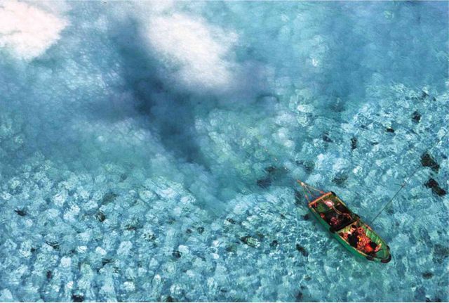 Những hình ảnh chụp từ trên cao cho thấy kỹ thuật khai thác mới thậm chí gây tổn hại hơn nhiều cho hệ sinh thái, vì chúng thổi bay lớp trầm tích, gây ảnh hưởng nghiêm trọng tới hoạt động sinh sản và sự sinh tồn của các loài cá.