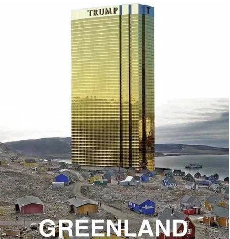 Bức ảnh chỉnh sửa được Tổng thống Mỹ Donald Trump đăng trên Twitter thể hiện một tòa nhà cao tầng mạ vàng, phía trên gắn chữ "Trump" xuất hiện cạnh những căn nhà gỗ trên đảo Greenland của Đan Mạch. "Tôi hứa sẽ không làm điều này với Greenland", ông Trump viết dưới bức ảnh.
