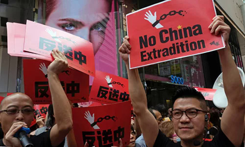 Người biểu tình Hong Kong phản đối dự luật dẫn độ. Ảnh: Reuters.