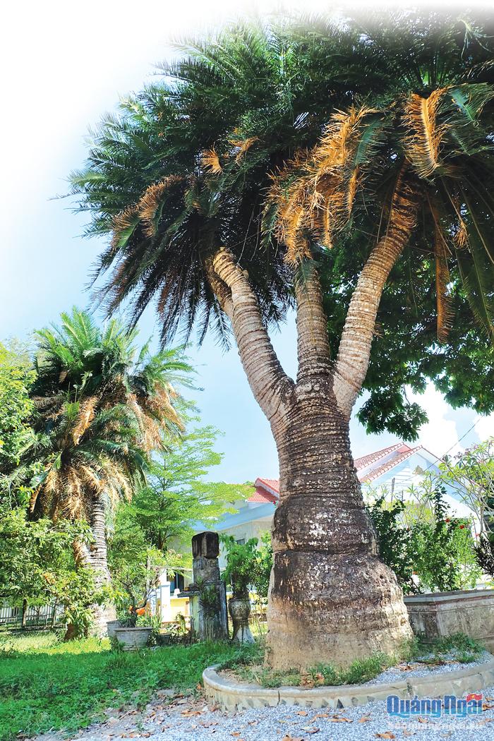 Hai cây thiên tuế cao lớn ước chừng trên dưới 150 năm tuổi trong khuôn viên Vườn Thích Lý.