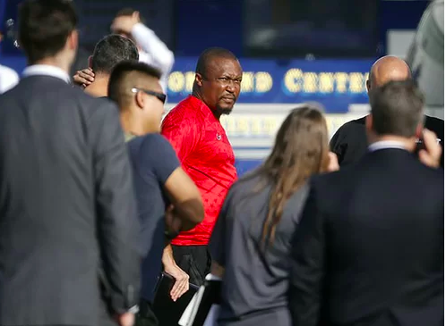 Một nghi phạm người Nigeria bị cảnh sắt bắt giữ ở Los Angeles hôm 22/8. Ảnh: AP