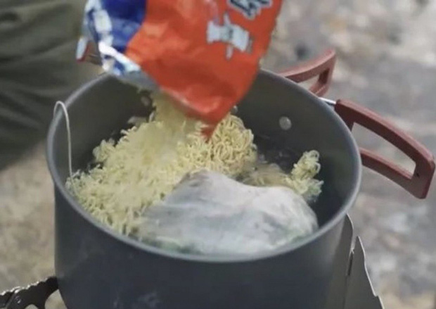 Một bức ảnh được cắt ra từ clip nấu thực vật quý hiếm với mỳ tôm của vlogger.