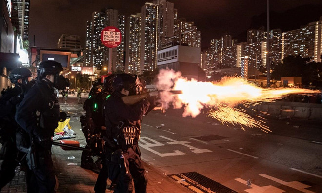 Cảnh sát chống bạo động bắn hơi cay vào người biểu tình Hong Kong
