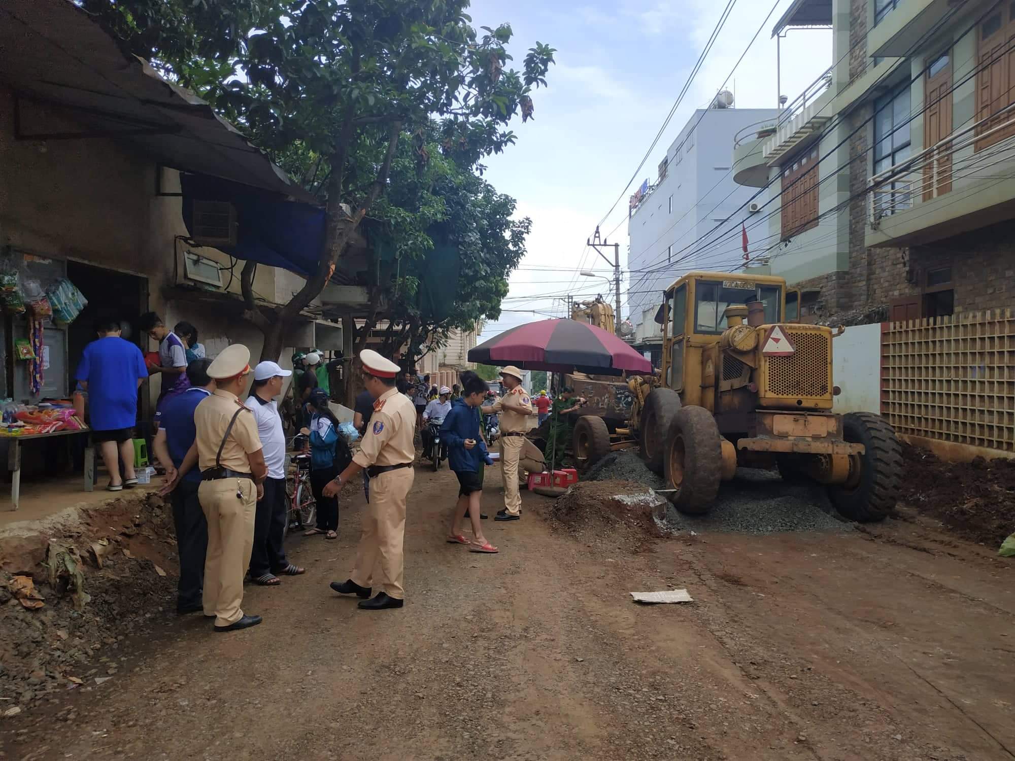 Theo thông tin ban đầu, vào thời điểm trên, xe ủi (chưa rõ danh tính tài xế) đang san đá làm đường tại hẻm 119 thì ông Nguyễn Đức Duy (54 tuổi, ngụ phường Tân Lập - Đội phó đội quản lý hành chính Công an huyện Buôn Đôn) sợ bể đường ống nước của gia đình nên ra kiểm tra.