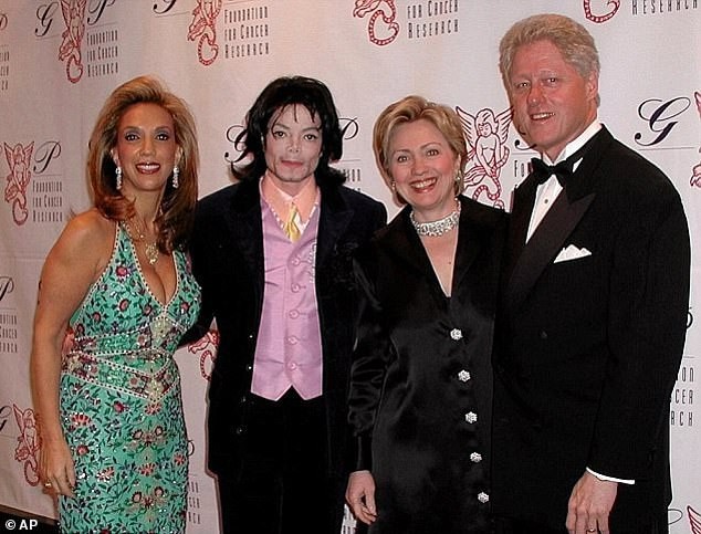Bà ngoại của Kai, bà Denise Rich, chụp ảnh cùng Michael Jackson, vợ chồng Hillary và Bill Clinton năm 2001.