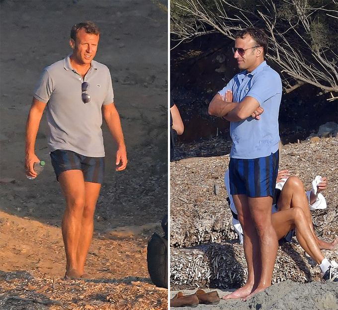 Tổng thống Pháp đi chân trần trên cát. Sau khi nghỉ dưỡng tại đây, vợ chồng nhà lãnh đạo Pháp đã di chuyến đến Biarritz để tiếp đón các nhà lãnh đạo Canada, Đức, Italy, Nhật Bản, Anh, Mỹ đến dự Hội nghị thượng đỉnh Nhóm Các nền công nghiệp phát triển hàng đầu thế giới (G7), diễn ra từ ngày 24 đến 26/8.