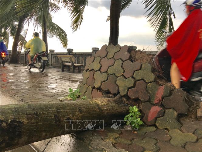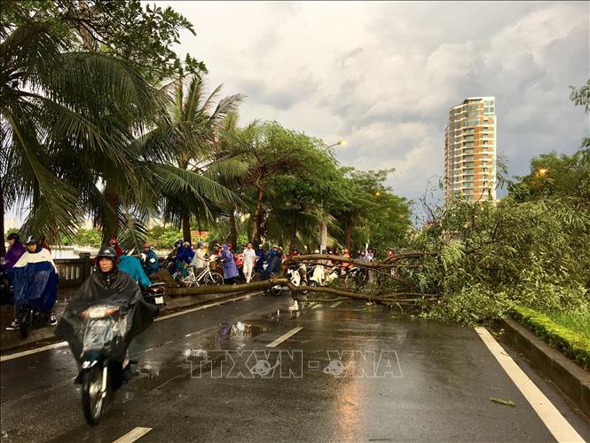 Cây đổ trên đường Lạc Long Quân, quận Tây Hồ. Ảnh: Dương Giang/ TTXVN