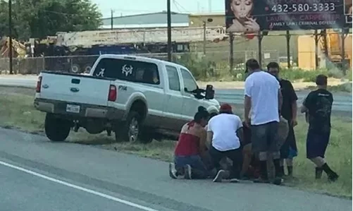 Nhóm người hỗ trợ một người bị thương do xả súng tại Odessa, Texas ngày 31/8. Ảnh: Sun.