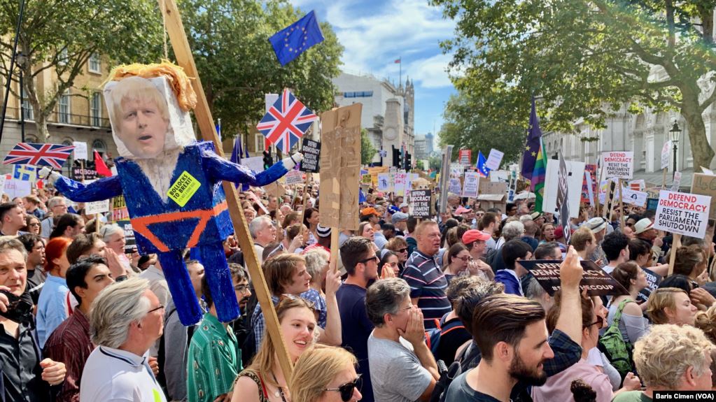 Thủ tướng Anh Boris Johnson vừa qua đã đình chỉ nghị viện trong thời gian một tháng trước hạn chót để nước này rời khỏi Liên minh Châu Âu, khiến hàng ngàn người trên khắp Vương quốc Anh và Bắc Ireland xuống đường biểu tình chống lại quyết định này.