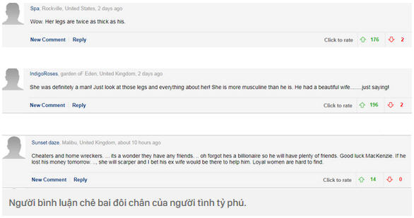Người bình luận chê bai đôi chân của người tình tỷ phú.
