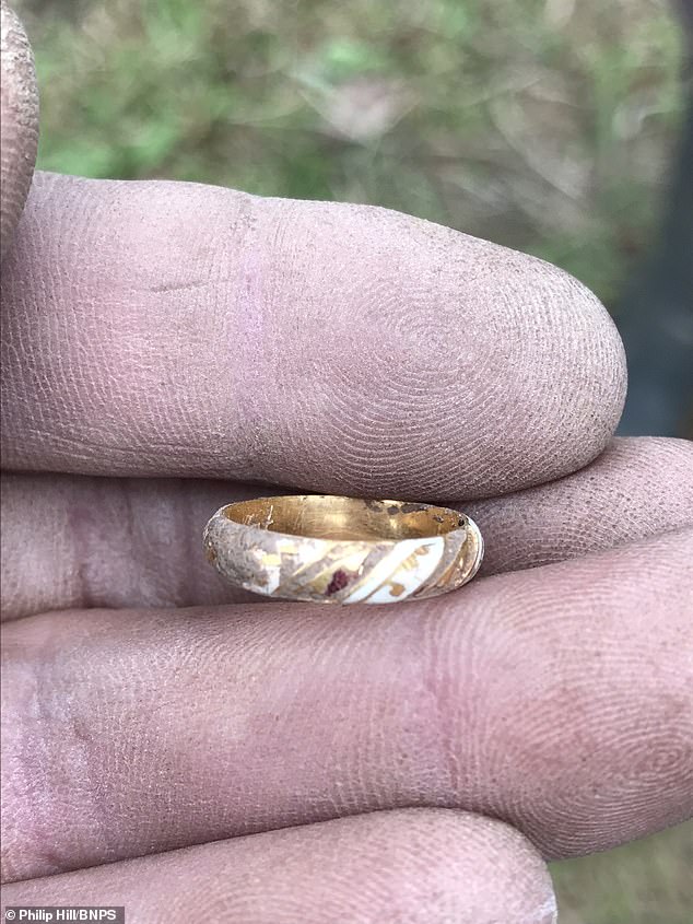 Bà Sue Kilvert, 66 tuổi, không khỏi vui mừng khi tìm thấy thứ quý giá đầu tiên trong hành trình tìm kho báu suốt 5 năm qua. Bà nói mình đã đào 20cm xuống dưới đất và tìm thấy chiếc nhẫn.