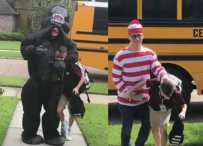 Từ tháng 8, Noah Tingle, ở Louisiana, Mỹ đã quyết định hóa trang thành các nhân vật khác nhau để đón em trai Max đi học về.
