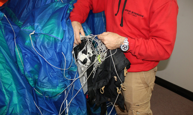 Chiếc dù của Victoria bị thắt nút vào nhau. Ảnh: Wiltshire Police/PA.