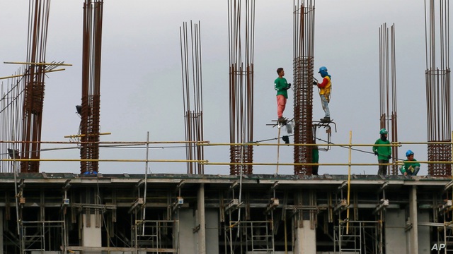 Các công nhân xây dựng làm việc tại công trình ở thành phố Paranaque, nam Manila, Philippines (Ảnh: AP)