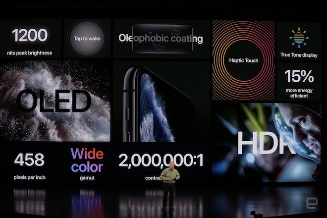 Cả Pro và Pro Max đều được trang bị màn hình công nghệ OLED với độ tương phản 2.000.000:1, độ sáng 1.200nit và tiết kiệm năng lượng hơn 15% so với trước đây. 2 model này được trang bị chip A13 Bionic mà theo Apple là nhanh nhất trong các dòng điện thoại thông minh hiện nay.