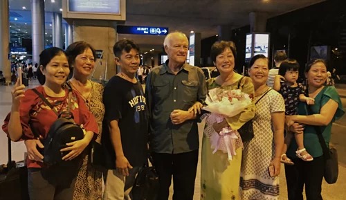 Ông Ken và các thành viên trong đại gia đình của bà Lan tại sân bay Tân Sơn Nhất ngày 12/9. Ảnh: Hiền Đức.