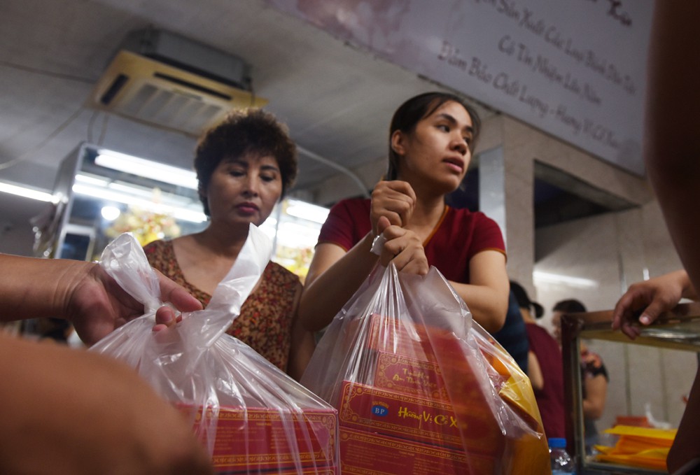 Tại đây, luôn có cả hàng trăm người đứng xếp hàng dài đến 300m chờ đến lượt mua bánh Trung thu.
