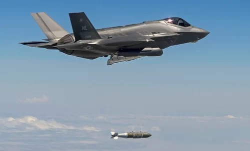 Tiêm kích F-35A thả bom GBU-31/B trong đợt không kích hôm 10/9. Ảnh: AFCENT.