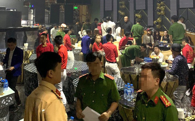 Tại nhiều bàn VIP của quán, các dân chơi tìm cách phi tang vật tinh thể màu trắng, màu hồng…nghi ma tuý xuống dưới sàn để phi tang. Tại 3 bàn VIP, đoàn kiểm tra tìm thấy 3 gói nylon chứa ma túy. Riêng tại bàn VIP 39, cảnh sát phát hiện Nguyễn Thị Ngọc N. (45 tuổi, ngụ Thủ Đức) cất giấu viên nén màu hồng nghi là thuốc lắc.