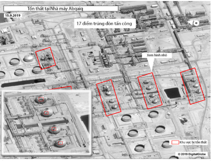 Hình ảnh chụp từ vệ tinh cho thấy Nhà máy Abqaiq bị bắn phá