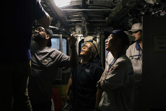 "Tôi chưa thấy bất kỳ đường dây bí mật nào", Perry Nobles, một thợ điện tại nhà máy CRRC của Trung Quốc, người đang lắp đặt đường dây bên trong thân tàu nói.