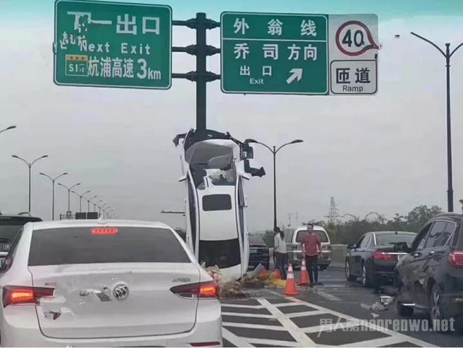 Chiều ngày 15/9, trên đường cao tốc tại thành phố Hàng Châu, Chiết Giang (Trung Quốc) đã xảy ra một vụ tai nạn vô cùng hi hữu. Do mất lái, một nữ tài xế đã đâm thẳng chiếc xe ô tô của mình... dựng đứng vào cột biển báo. Rất may mắn là cả lái xe và hai nữ hành khách đều bình an vô sự. Vụ việc là lời cảnh báo dành cho những tài xế di chuyển trên đường cao tốc phải cẩn thận hơn trong quá trình quan sát và lái xe.