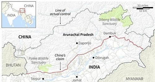 Khu vực tranh chấp giữa Trung Quốc và Ấn Độ tại bang Arunachal Pradesh. Đồ họa: Reuters.