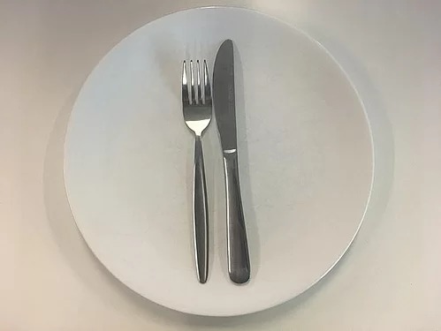 Trong trường hợp này, bạn cần đặt chéo dao và dĩa sang hai bên đĩa làm tín hiệu tạm dừng, đặt dao và dĩa theo hình chữ thập nghĩa để cho bồi bàn biết khách đang đợi món kế tiếp. Nếu muốn khen bữa ăn ngon, bạn hãy xếp dao, dĩa song song và đặt ngang trên đĩa khi kết thúc. Còn nếu bạn đặt thẳng chúng (như hình), điều đó chỉ có nghĩa là bạn muốn kết thúc bữa ăn.