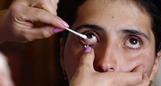 Hạt pha lê nhỏ ra từ mắt cô gái. Ảnh: Sun